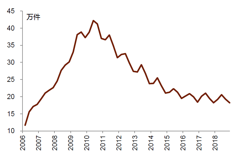 资料来源:万得资讯,中金公司研究部图表20:美国破产申请案件数量