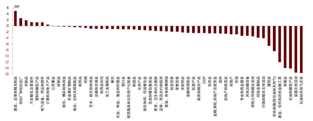 资料来源:万得资讯,中金公司研究部图表33:2007年前后10年美国分行业GDP增速变化