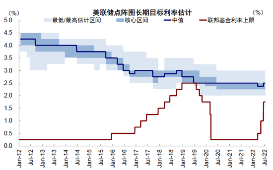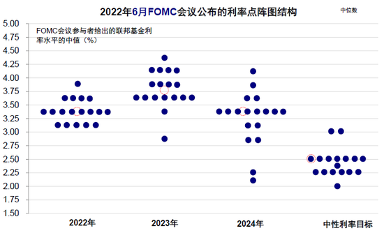 图表:6月FOMC美联储给出的中性利率目标中值2.5%