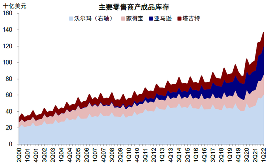 图表:沃尔玛和塔吉特都出现库存过多反而导致成本增加的问题;家得宝、亚马逊的库存也都创出多年新高