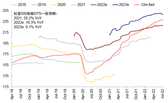 图表:但盈利预期并未明显下调(2022及2023E EPS增速仍维持在9~10%左右)