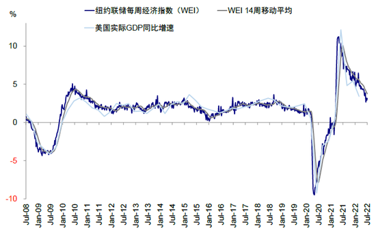 图表:纽约联储每周经济指数持续回落至当前的3.17%(过去14周移动平均3.76%)